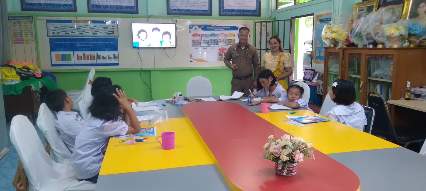 ร.ต.ท.อุดมเดช สุภาหงษ์ รอง สว.(ป.)สภ.ปางศิลาทอง ปฏิบัติหน้าที่ครูวิทยากรตำรวจแดร์ตามโครงการศึกษาเพื่อต่อต้านการใช้ยาเสพติดในเด็กนักเรียน