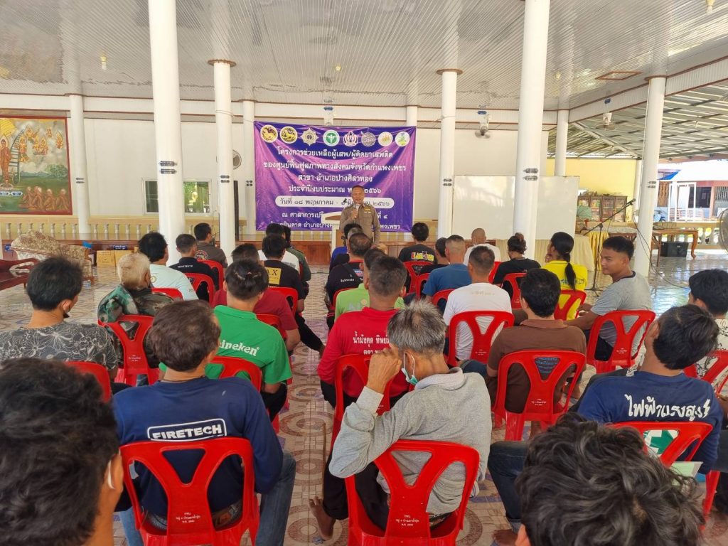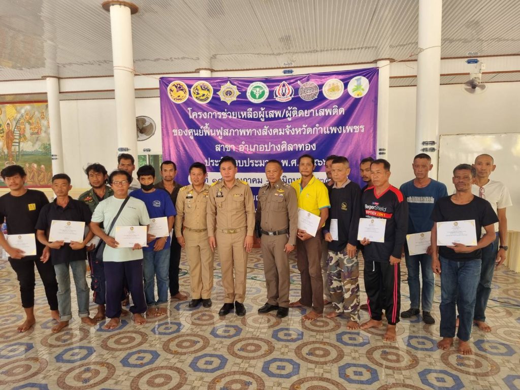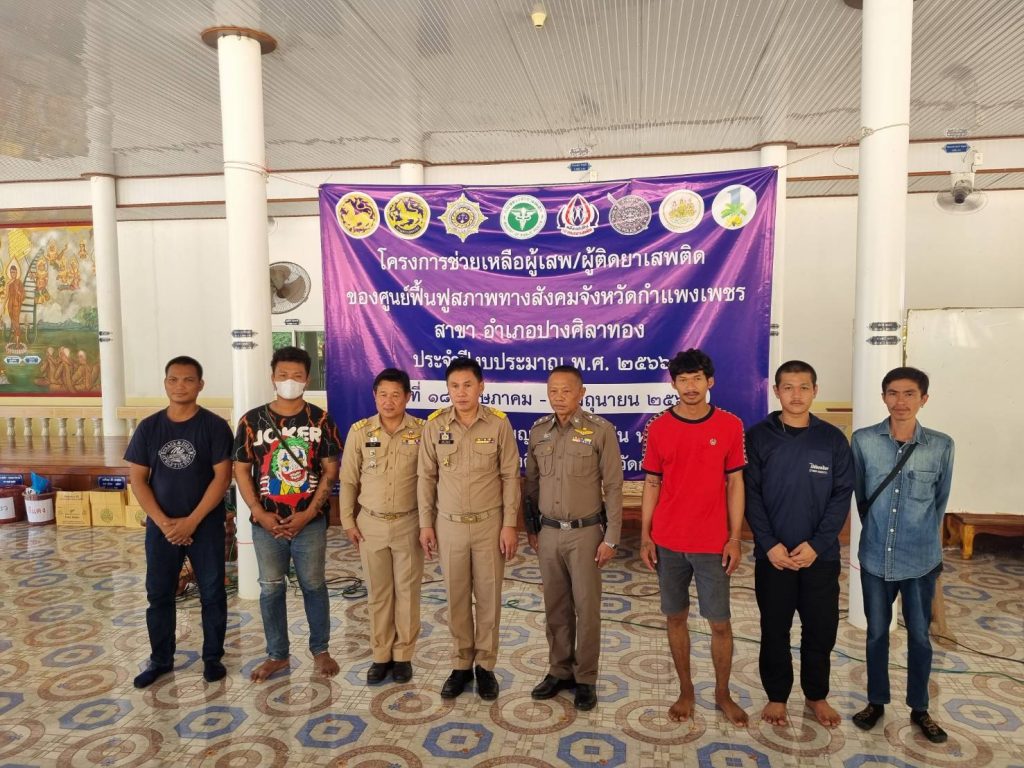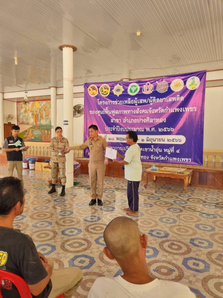 ร.ต.อ.คนอง เรื่อศรีจันทร์ รอง สว.(ป.)สภ.ปางศิลาทอง พร้อมชุดปฏิบัติการชุมชนยั่งยืน ได้มาร่วมปิดโครงการเข้าค่ายช่วยเหลือผู้เสพยาและศูนย์ฟื้นฟูยาเสพติดสู่สังคมที่วัดเขาน้ำอุ่น ต.หินดาต อ.ปางศิลาทอง จ.กำแพงเพชร