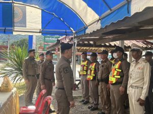 วันที่ 29 ธ.ค. 2566 เวลา 14.00 น. พล.ต.ต.โอภาส คงเมือง ผบก.ภ.จว.กพ.พร้อมคณะได้ออกตรวจเยี่ยมให้กำลังใจผู้ใต้บังคับบัญชาที่ปฏิบัติหน้าที่ดูแลความสงบเรียบร้อย ควบคุมการจราจร และบังคับใช้กฎหมาย พบ พ.ต.อ.ภาสกร เกิดโต ผกก.สภ.ปางศิลาทอง ,พ.ต.ท.นพคุณ อนันตวงค์ รอง ผกก.ป.สภ.ปางศิลาทอง ,พ.ต.ท.กรภัทร์ เกตุทิม สวป.สภ.ปางศิลาทอง เจ้าหน้าที่ตำรวจประจำจุดบริการ สายตรวจรถยนต์20 สายตรวจจราจร ผู้นำท้องถิ่น ท้องที่ อาสา อปพร. และ อสม.อยู่ปฏิบัติหน้าที่ ณ จุดบริการประชาชนช่วงเทศกาลปีใหม่ 67 ณ จุดบริการประชาชนเขาน้ำอุ่น ม.4 ต.หินดาต อ.ปางศิลาทอง จว.กำแพงเพชร