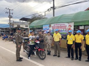 วันที่ 13 เมษายน 2568 เวลา 17.00 น. พ.ต.อ.ภาสกร เกิดโต ผกก.สภ.ปางศิลาทอง พร้อมด้วยข้าราชการตำรวจชุดจิตอาสา สภ.ปางศิลาทอง ทำกิจกรรมจิตอาสาประชาสัมพันธ์รณรงค์ลดอุบัติเหตุทางถนนช่วงเทศกาลสงกรานต์ประจำปี พ.ศ. 2568 พร้อมทั้งมอบหมวกกันน็อกให้ประชาชน