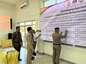 วันที่ 13 กุมภาพันธ์ 2569 เวลา 09.00 น. นายปพน สอนธรรม นายอำเภอปางศิลาทอง ประธานในพิธี โดยมีผู้เข้าร่วมพิธีเปิดโครงการ พ.ต.อ.สมนึก นวลคำ ผกก.สภ.ปางศิลาทอง, พ.ต.ท.สหสมหมาย บุญพอ รองผกก.ป.สภ.ปางศิลาทอง, พ.ต.ต.ธวัช กันตะบุตร สวป.สภ.ปางศิลาทอง, กำนันตำบลหินดาต, ผอ.รพ.ปางศิลาทอง, ผอ.รพ.สต.หินดาต, ผู้ใหญ่บ้าน หมู่ที่ 3 และผู้ใหญ่บ้าน หมู่ที่ 13 ต.หินดาต, หัวหน้าส่วนราชการที่เกี่ยวข้อง, กรรมการชุมชน, ชรบ. พร้อมด้วยเจ้าหน้าที่ตำรวจชุดปฏิบัติการ ร่วมเปิดโครงการดำเนินงานตำบลยั่งยืน เพื่อแก้ไขปัญหายาเสพติดแบบครบวงจรตามยุทธศาสตร์ ประจำปี 2569 พร้อมทั้งร่วมลงนามทำบันทึกข้อตกลง(MOU)ร่วมกับส่วนราชการและตัวแทนประชาชนภาคีเครือข่ายทั้ง2หมู่บ้าน ณ ห้องประชุม อำเภอปางศิลาทอง จังหวัดกำแพงเพชร