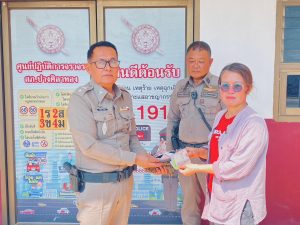 วันที่ 26 ธันวาคม 2566 เวลา 12.00 น. พ.ต.ท.กรภัทร์ เกตุทิม สวป.สภ.ปางศิลาทอง พร้อมด้วยเจ้าหน้าที่ตำรวจ สภ.ปางศิลาทอง ได้รับมอบกระเป๋าจากพลเมืองดี ซึ่งเก็บได้บริเวณหน้าธนาคารเพื่อการเกษตรและสหกรณ์ สาขาปางศิลาทอง ตรวจสอบพบเอกสารและเงินสดจำนวน 10,000 บาท จึงได้ติดต่อผู้เป็นเจ้าของเพื่อให้มารับเจ้าของได้มาแสดงตัวและตรวจสอบสิ่งของที่อยู่ในกระเป๋ารับคืนเป็นที่เรียบร้อย