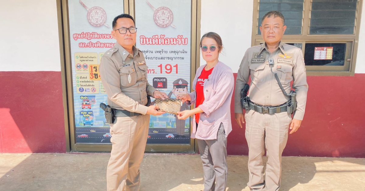 วันที่ 26 ธันวาคม 2566 เวลา 12.00 น. พ.ต.ท.กรภัทร์ เกตุทิม สวป.สภ.ปางศิลาทอง พร้อมด้วยเจ้าหน้าที่ตำรวจ สภ.ปางศิลาทอง ได้รับมอบกระเป๋าจากพลเมืองดี ซึ่งเก็บได้บริเวณหน้าธนาคารเพื่อการเกษตรและสหกรณ์ สาขาปางศิลาทอง ตรวจสอบพบเอกสารและเงินสดจำนวน 10,000 บาท จึงได้ติดต่อผู้เป็นเจ้าของเพื่อให้มารับเจ้าของได้มาแสดงตัวและตรวจสอบสิ่งของที่อยู่ในกระเป๋ารับคืนเป็นที่เรียบร้อย