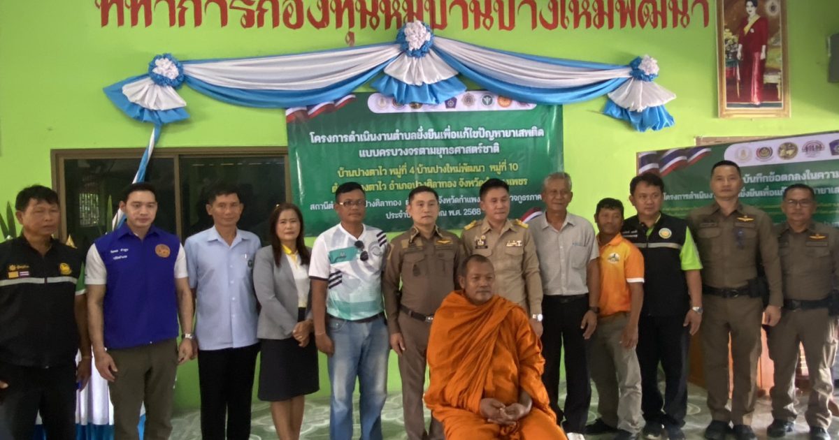 วันที่ 12 มีนาคม 2568 เวลา 10.00 น. พ.ต.อ.ภาสกร เกิดโต ผกก.สภ.ปางศิลาทอง พ.ต.ท.สหสมหมาย บุญพอ รอง ผกก.ป.สภ.ปางศิลาทอง พ.ต.ท.กรภัทร์ เกตุทิม สวป.สภ.ปางศิลาทอง พร้อมด้วย ตำรวจชุดชุมชนยั่งยืน สภ.ปางศิลาทอง ,ปลัดอำเภอปางศิลาทอง ,นกยก อบต.ปางตาไว ,ผอ.รพ.สต.บ้านเพชรเจริญ ,กำนันตำบลปางตาไว ,ผู้ใหญ่บ้าน ,เจ้าอาวาสวัดปางตาไว ,ประชาชนในชุมชน และ กต.ตร.สภ.ปางศิลาทอง