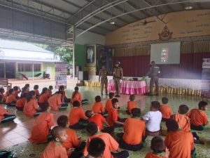 ร่วมกับ นางสาวโสภา ทัศนภาค ผอ.โรงเรียนบ้านอุดมทรัพย์ พร้อมด้วยครูโรงเรียนบ้านอุดมทรัพย์ ดำเนินโครงการ “สอนน้องรู้กฎเสริมสร้างความปลอดภัยและวินัยจราจร” รุ่นที่ 4 ณ หอประชุมโรงเรียนบ้านอุดมทรัพย์ มีนักเรียนเข้าร่วมโครงการจำนวน 100 คน