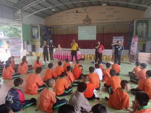 ร่วมกับ นางสาวโสภา ทัศนภาค ผอ.โรงเรียนบ้านอุดมทรัพย์ พร้อมด้วยครูโรงเรียนบ้านอุดมทรัพย์ ดำเนินโครงการ “สอนน้องรู้กฎเสริมสร้างความปลอดภัยและวินัยจราจร” รุ่นที่ 4 ณ หอประชุมโรงเรียนบ้านอุดมทรัพย์ มีนักเรียนเข้าร่วมโครงการจำนวน 100 คน