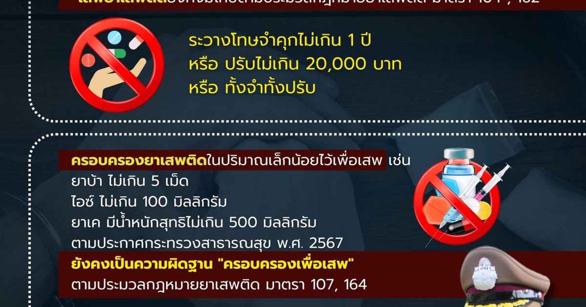 âāļāļēāļĢāđāļŠāļāļĒāļēāđāļŠāļāļāļīāļāļĒāļąāļāļāļāļĄāļĩāđāļāļĐāļāļĒāļđāđāļāļēāļĄāļāļĢāļ°āļĄāļ§āļĨāļāļāļŦāļĄāļēāļĒāļĒāļēāđāļŠāļāļāļīāļ āļĄāļēāļāļĢāļē 104, 162 āļĄāļĩāđāļāļĐāļāļģāļāļļāļāđāļĄāđāđāļāļīāļ 1 āļāļĩ āļŦāļĢāļ·āļāļāļĢāļąāļāđāļĄāđāđāļāļīāļ 20,000 āļāļēāļ āļŦāļĢāļ·āļ āļāļąāļāļāļģāļāļąāđāļāļāļĢāļąāļ āđāļāđāļŦāļēāļāļāļđāđāđāļŠāļāļŠāļĄāļąāļāļĢāđāļāđāļāđāļēāļĢāļąāļāļāļēāļĢāļāļģāļāļąāļāļĢāļąāļāļĐāļēāđāļĨāļ°āđāļāđāļāđāļāļāļēāļĄāđāļāļ·āđāļāļāđāļāļāļĩāđāļāļģāļŦāļāļ āđāļĨāļ°āļāļģāđāļāļīāļāļāļēāļĢāđāļāđāļēāļĢāļąāļāļāļēāļĢāļāļģāļāļąāļāļāļāļāļĢāļāļāđāļ§āļ āļāđāļāļ°āđāļĄāđāļĄāļĩāļāļ§āļēāļĄāļāļīāļ āļāļēāļĄāļāļĢāļ°āļĄāļ§āļĨāļāļāļŦāļĄāļēāļĒāļĒāļēāđāļŠāļāļāļīāļ āļĄāļēāļāļĢāļē 113 āļāļąāđāļāļāļĩāđ āļāļāļĨāļāđāļāļĐāļāļēāļāļāļāļŦāļĄāļēāļĒāļĒāļąāļāļāļāļĄāļĩāļāļĒāļđāđ āļāļķāđāļāļāļāļŦāļĄāļēāļĒāļāļĩāđāļĄāļĩāđāļāļāļāļēāļĢāļĄāļĒāđāļāļĩāđāļāļ°āļāđāļ§āļĒāđāļŦāļĨāļ·āļ āđāļŦāđāđāļāđāļēāļĢāļąāļāļāļģāļāļąāļāđāļāļĒāđāļĄāđāđāļāļēāļāļīāļāļāļēāļāļāļēāļāļē āļŦāļĢāļ·āļāļāļēāļĢāļĨāļāļāļēāļĢāđāļāđāļāļāļēāļāļāļēāļāļĢāļĢāļĄāļāļāļāļāļđāđāđāļŠāļ (decriminalization) âāļĄāļāļāļāļđāđāđāļŠāļ āđāļāđāļāļāļđāđāļāđāļ§āļĒâ āđāļāđāļāļĢāļ°āļāļ§āļāļāļēāļĢāļāļēāļāļŠāļēāļāļēāļĢāļāļŠāļļāļāđāļĨāļ°āļŠāļļāļāļ āļēāļāđāļāļāļēāļĢāđāļāđāđāļāļāļąāļāļŦāļēāļāļđāđāđāļŠāļāļāļđāđāļāļīāļâ